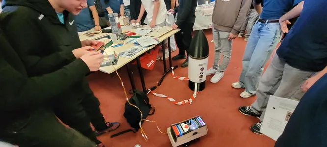 - Déplacement du satellite conforme avec une plateforme filoguidée par les collégiens jusqu'au pas de tir