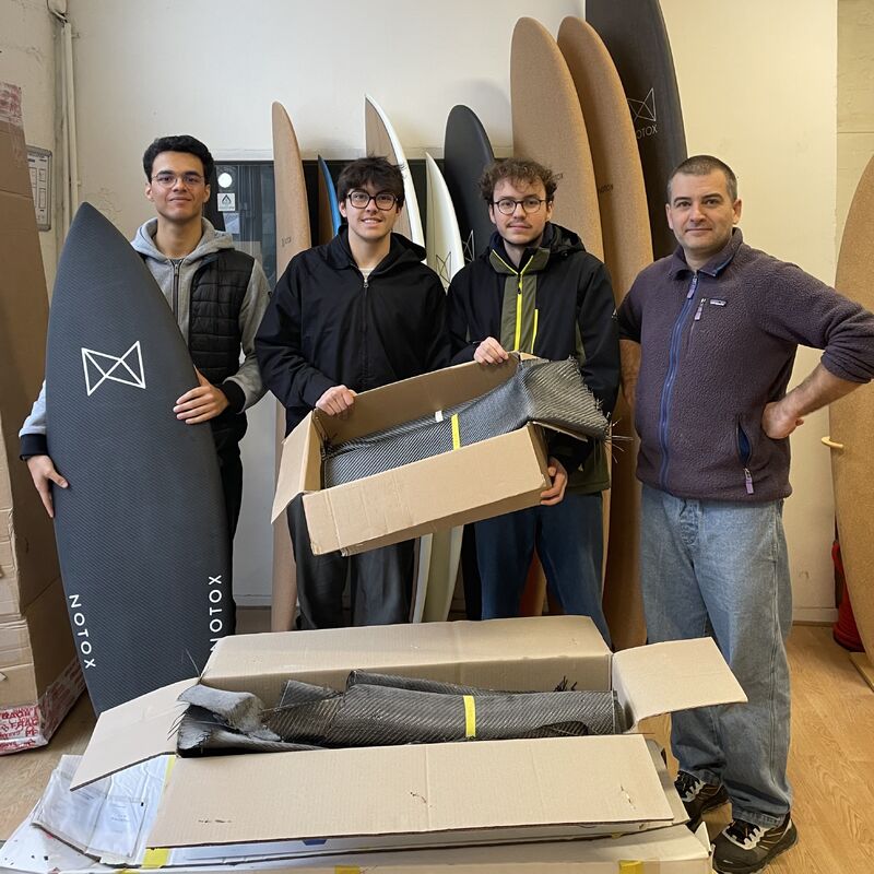 - Récupération de chutes de carbone chez NOTOX, fabricant local de planches de surf durables, dans une logique d’upcycling, avec des échanges techniques autour de procédés low-tech afin d’optimiser leur mise en œuvre.