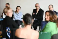 Venue de la ministre Aurore Bergé à l'ESTIA